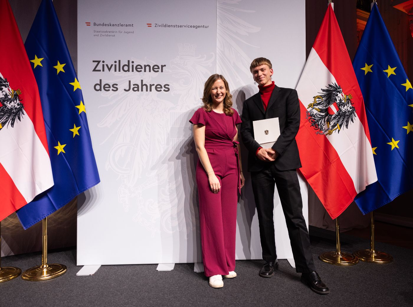 Diese Zivilcourage in einer herausfordernden Situation hat auch die Jury beeindruckt. Als Ausdruck des Dankes und der Wertschätzung dieser herausragenden Leistung wurde Simon Geiseder zum „Zivildiener des Jahres 2023 – Bundessieger“ gekürt.